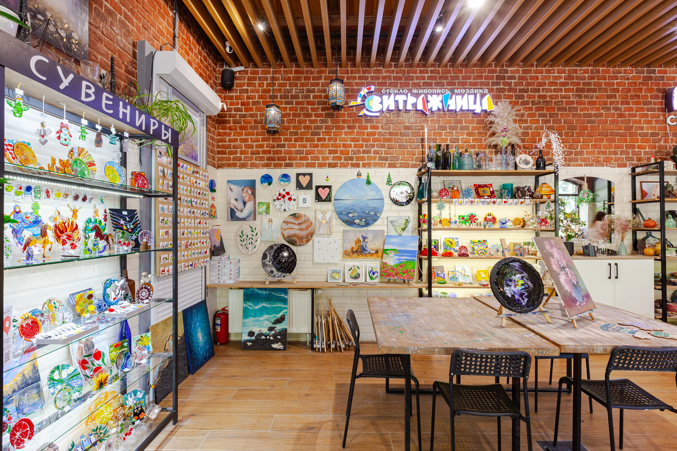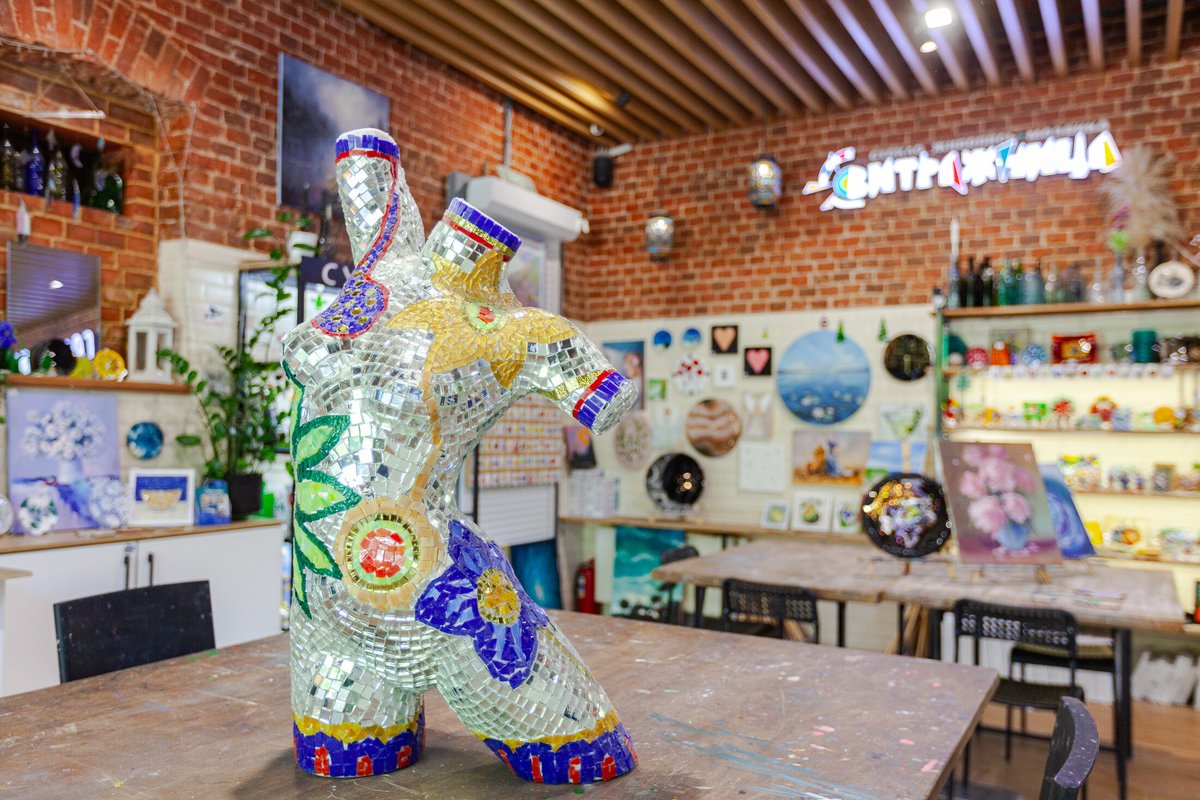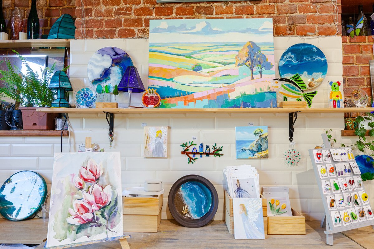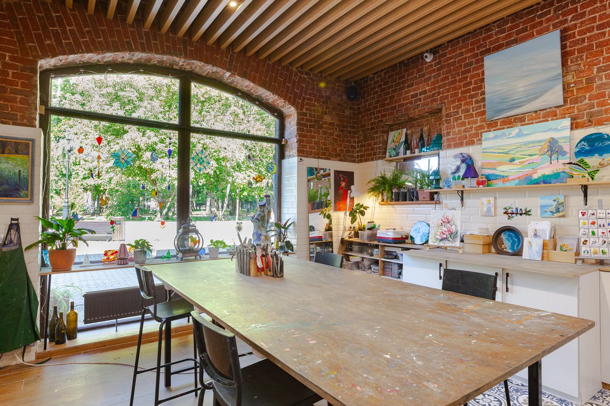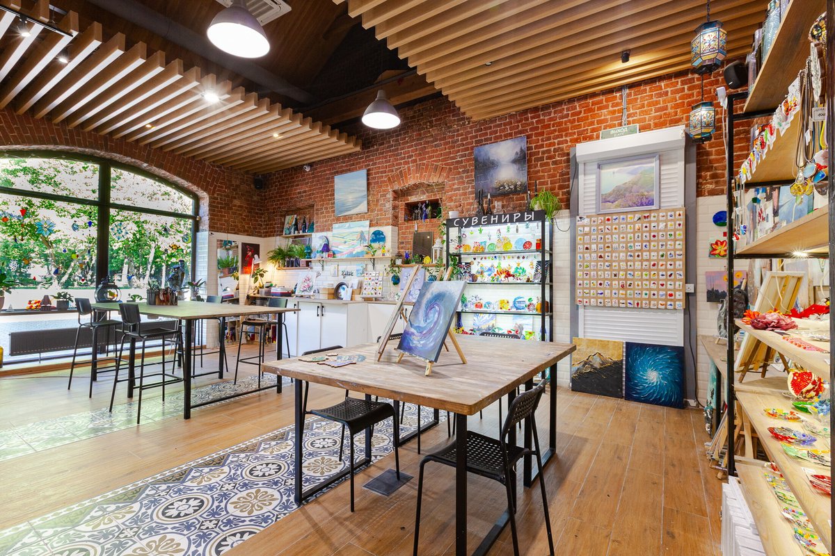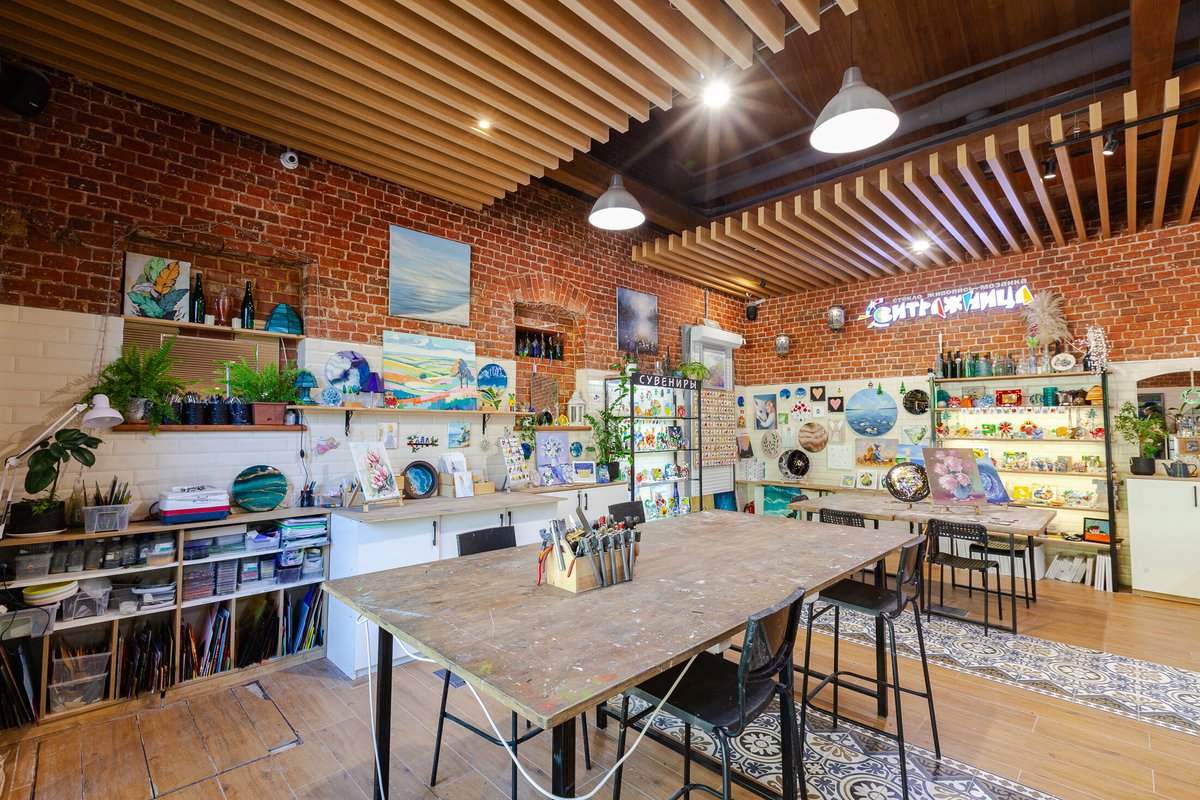 Мне очень понравилась атмосфера - спокойно, уютно, никто не подгоняет, можно неспешно творить. Особенно приятно удивило, что здесь предлагают разные направления: можно не только заняться витражами, но и порисовать картины или попробовать себя в гончарном деле. Есть из чего выбрать, всё организовано очень удобно, все материалы всегда под рукой.